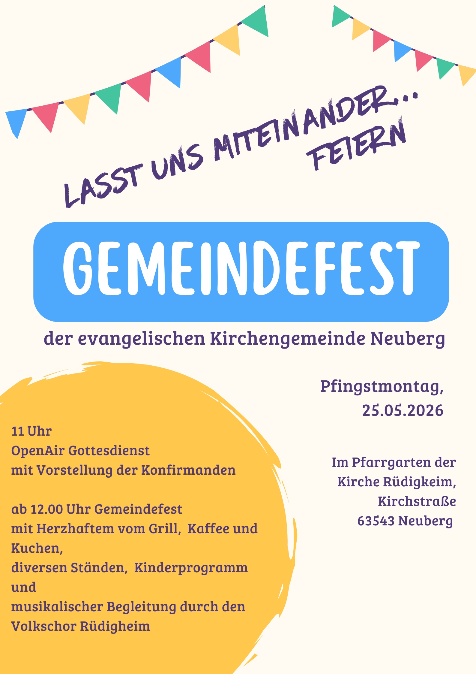 Rüdigheimer Kirchenkonzert 18. April Gemeindefest 2026 am Pfingstmontag